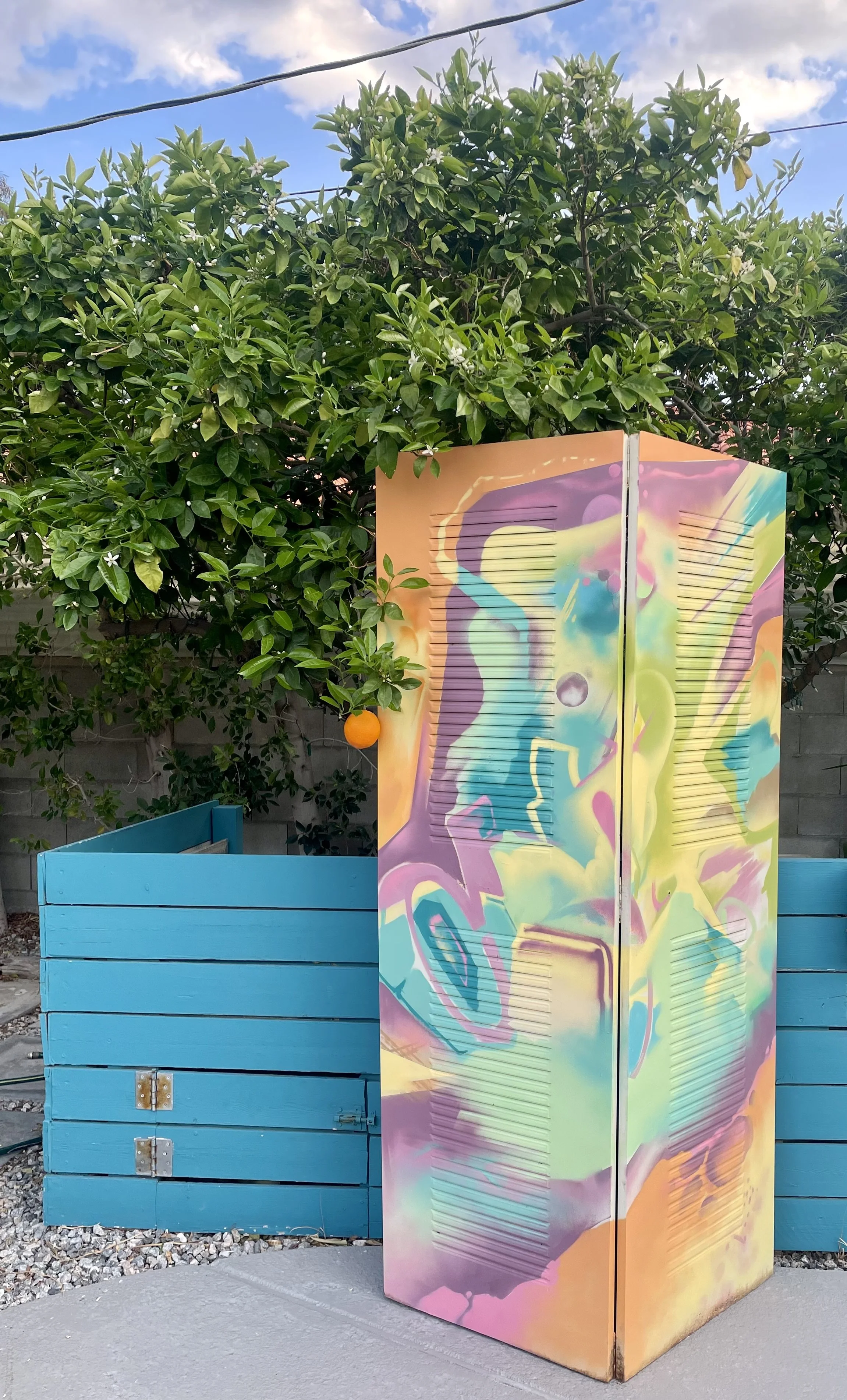 Utility box on Cedros Ave, Solana Beach, San Diego. 2023. Vinyl on metal. Commissioned by the City of Solana Beach.