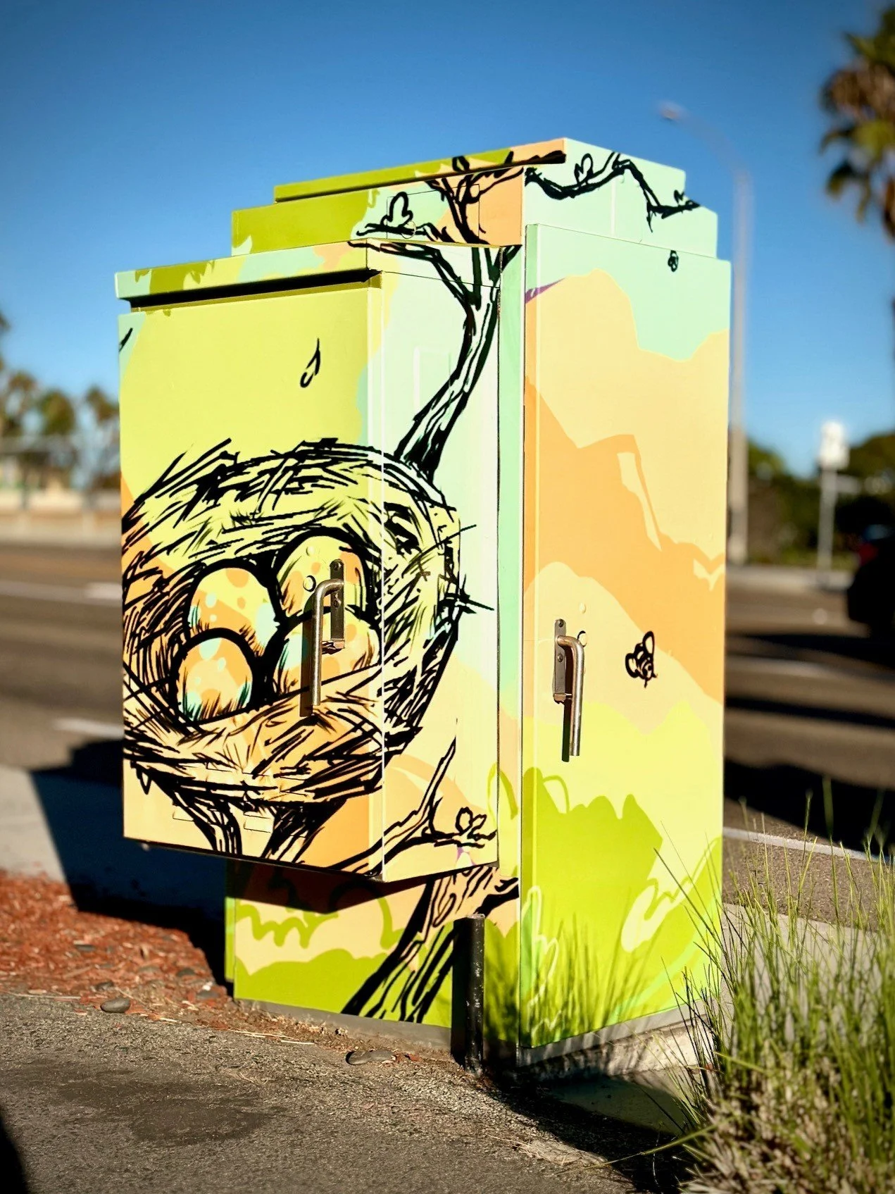 Solana Beach Utility Box Project, 2023. Vinyl on metal. Commissioned by the City of Solana Beach.
